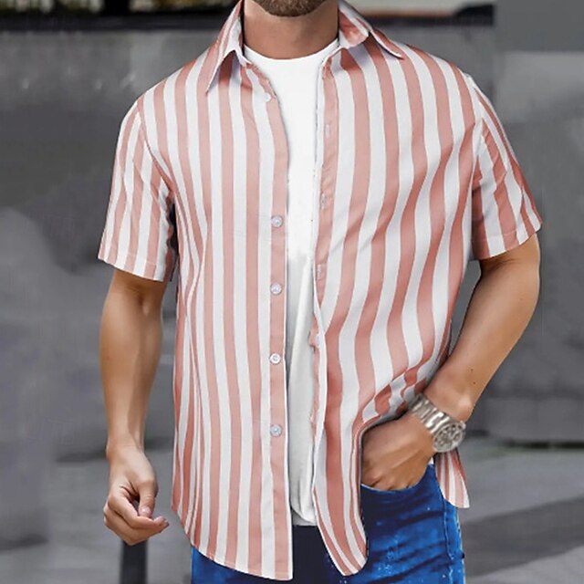 HOT ! Men's Shirt Summer Shirt Casual Shirt Beach Shirt Button Up Shirt Black Pink Sky Blue Gray Short Sleeve Striped Lapel Vacation Hawaiian Buttons Clothing Apparel Polyester Fashion Casual Comfortable
