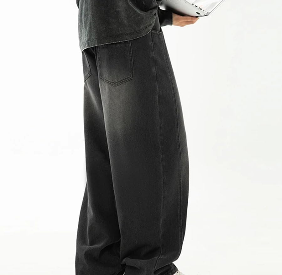 More information about Men’S Retro Oversized Jeans Mid Waist Loose Fit Wide Leg Denim Pants with Button