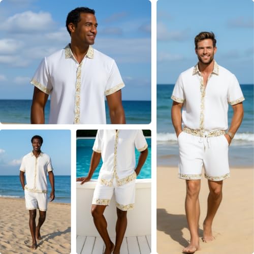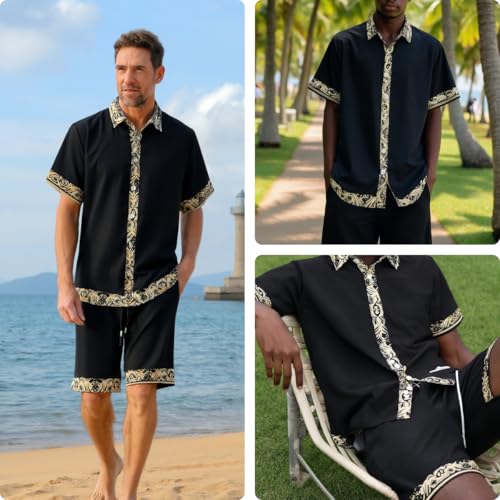 • Stylish and Comfortable: Our short-sleeved sets combine fashion with comfort, featuring a sleek design with intricate golden embroidery that adds a touch of elegance to any casual outfit.
