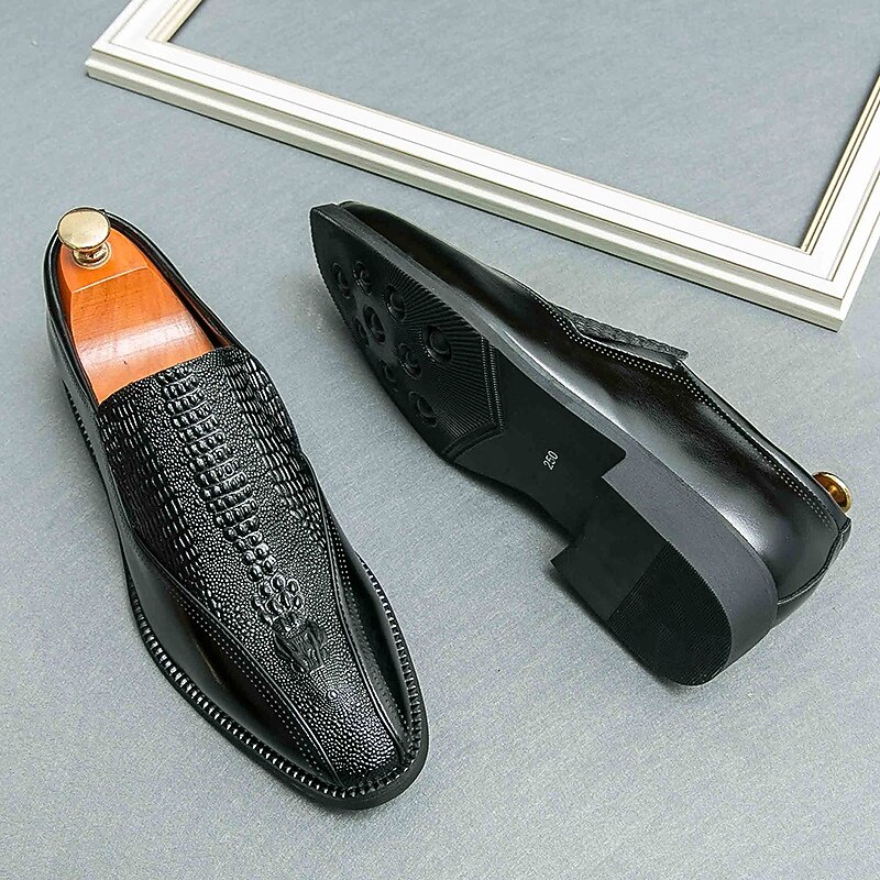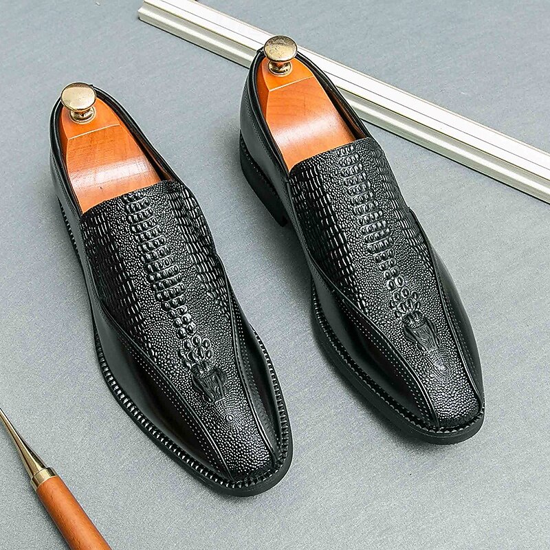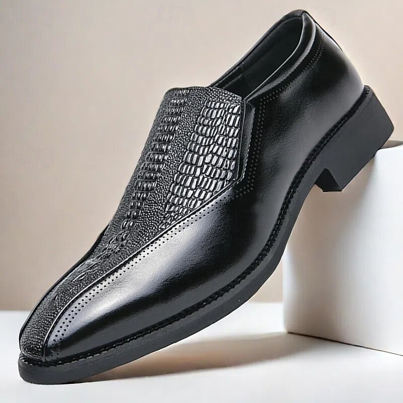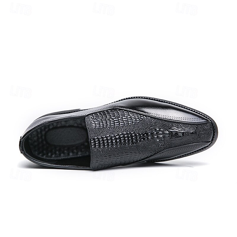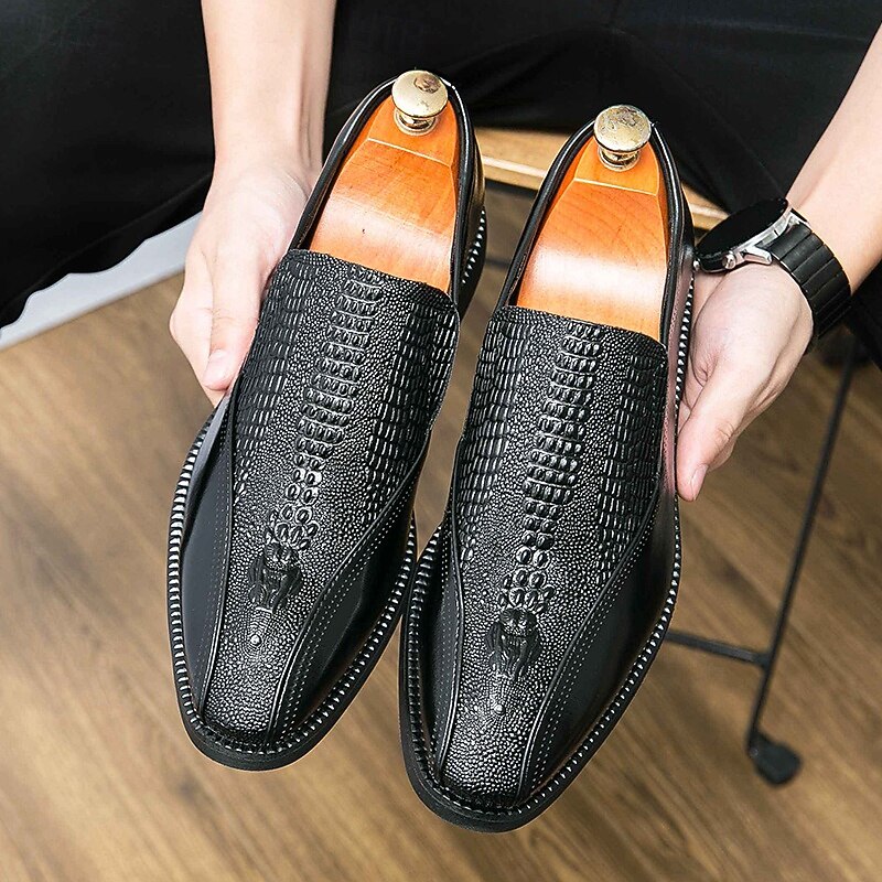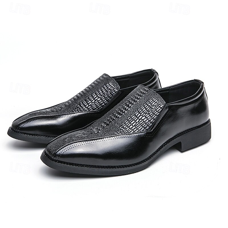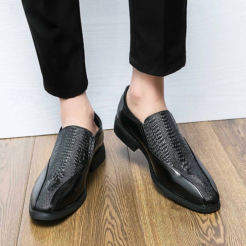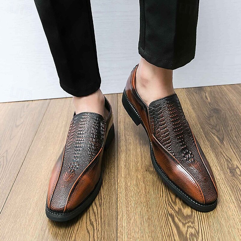 More information about Men's Brown Faux Leather Slip-On Shoes with Crocodile Pattern – Stylish Loafers for Business and Formal Occasions