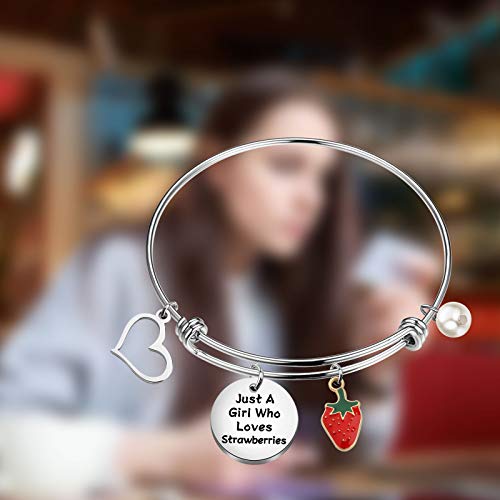 FAADBUK Funny Strawberries Bracelet Fruit Lover Gift Just A Who Loves Strawberries Jewelry Bracelet Strawberries Lover Gift Strawberries Jewelry (Strawberries Br-S) 1