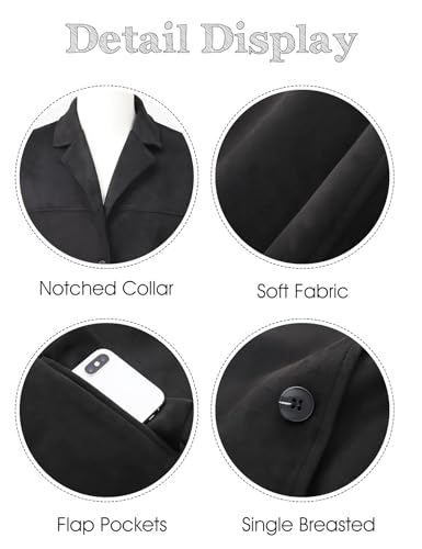 • Superior Quality: Crafted from soft and skin-friendly material, womens blazer jacket is comfortable to wear across seasons. Suede jacket women is lint-free and anti-pilling, providing a smooth and luxurious feel