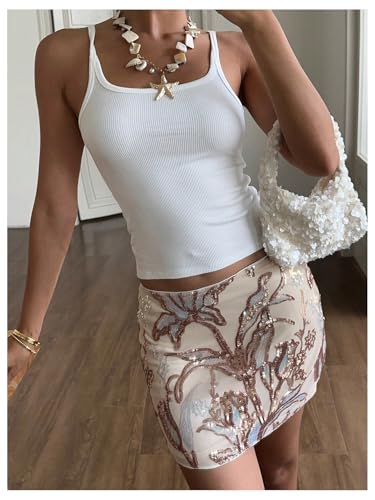 • Sequin mini skirt, bodycon party skirt, low waist floral skirt
