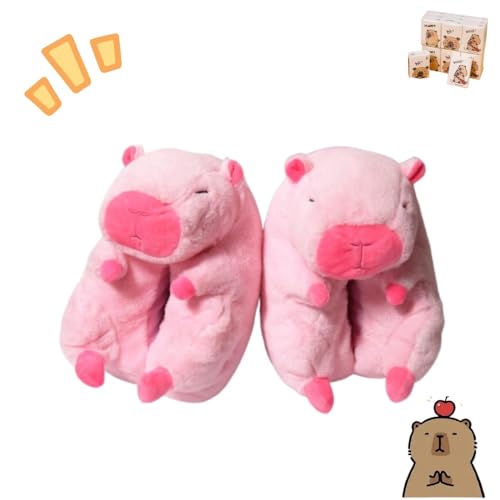 HOT ! Cute Capybara Slippers, with One Random Pocket Tissues Capybara Gift for Women Girls Kids, Fuzzy Faux Fur Platform Warm Non Slip Winter Shoes Plush Cute Cozy Indoor House Sandal Kawaii Bedroom Slipper