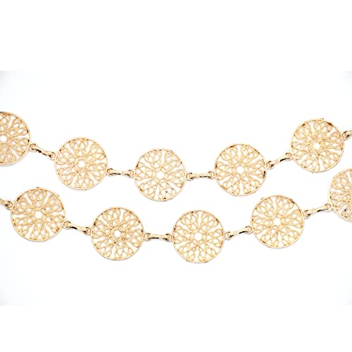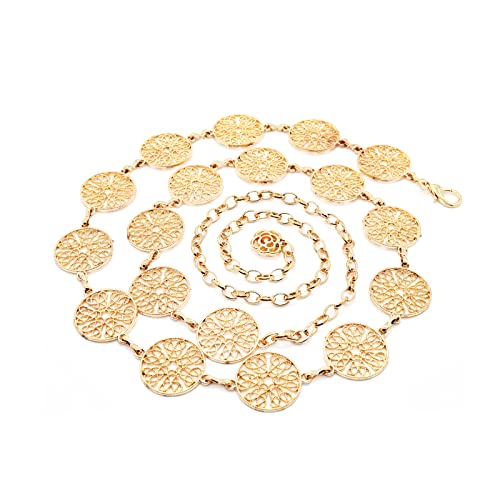 • ♥HOLLOW OUT DESIGN: This waist jewelry for women and girls designed with 18pcs round and hollow out leaf pattern linked with metal gold or silver chain, with small rose pendant as décor at the end of this chain, trendy and delicate.