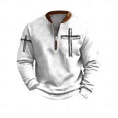 More information about Men's Sweatshirt Quarter Zip Sweatshirt White Brown Light Grey Half Zip Color Block Cross Half Zip Print Sports & Outdoor Daily Holiday Polyester Vintage Streetwear Casual Fall & Winter Clothing