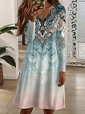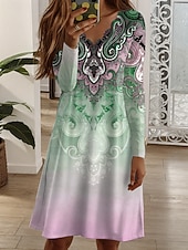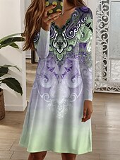 More information about Women's Mini Dress Shift Dress Casual Boho Daily Regular Fit Graphic Geometric Long Sleeve V Neck Blue Dark Green Purple Green Fall Winter