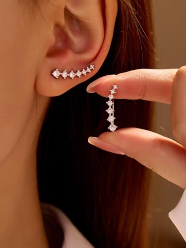 1 Pairs Silver Glistening CrystalEarrings, Adorned with Sparkling Stones, Hypoallergenic and Secure, Trendy Alloy French Style, Hoop Earrings With Elegant Minimalistic Design 6