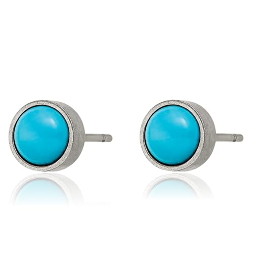 Titanium Blue Turquoise 6mm Studs Gemstone Earrings 6