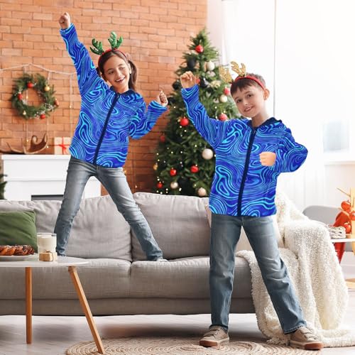 Blue Wavy Lines Girls Fleece Jacket Girls Fall Jacket Girls Zip Up Hoodie Girls Sherpa Jacket 2-10T 6