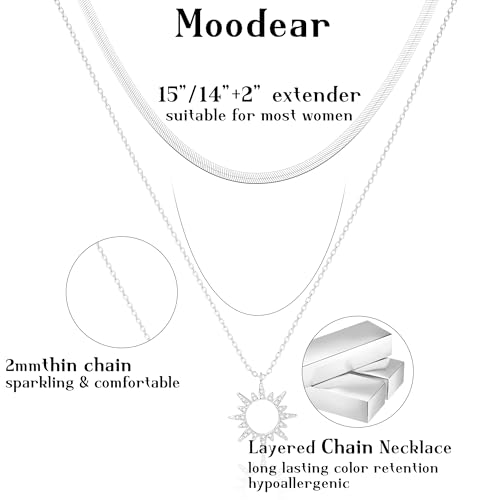 Moodear Sliver Layered Necklaces for Women Trendy Dainty Herringbone 925 Sterling Silver Snake Stack Sun Zirconia Pendant Choker Necklaces Jewelry Gifts 5