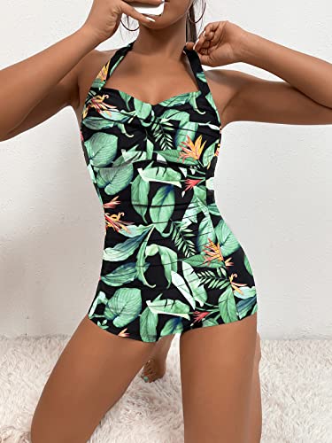More information about Women's Retro Tummy Control Swimsuits Halter One Piece Slimming Swimwear,Vintage Boyshorts Ruched Push Up Bathing Suit