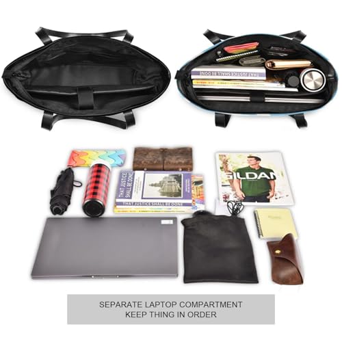 • ★【 Organizer Work Tote】:The work bags for women come with multi-compartments to meet all your work needs well. The laptop tote bag has an independent laptop compartment fits under 14 inch laptop and /tablet,a large main middle pocket designed for documents, book and gadgets,two small square pockets, two pen pockets,There has two side-pocket for power bank and water bottle inside.Stylish outer pocket with magnetic buckle,two zipper pockets and an anti-theft pocket,Easy access to items.