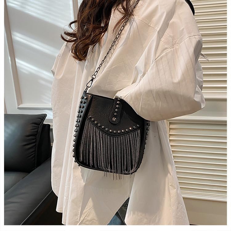 • Design: Fringe shoulder bag designed with rivet embellishments and tassel chain, trendy, cool and never out of style, it can be easily matched with your outfits and shoes for different occasions