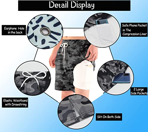 Camouflage Men's Swim Trunks with Compression Liner Stretch Beach Swim Shorts Swimsuit Swimwear 5