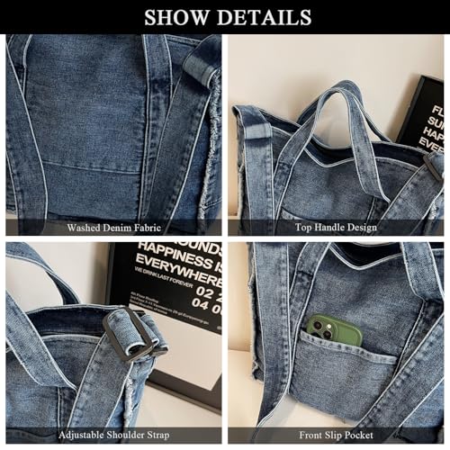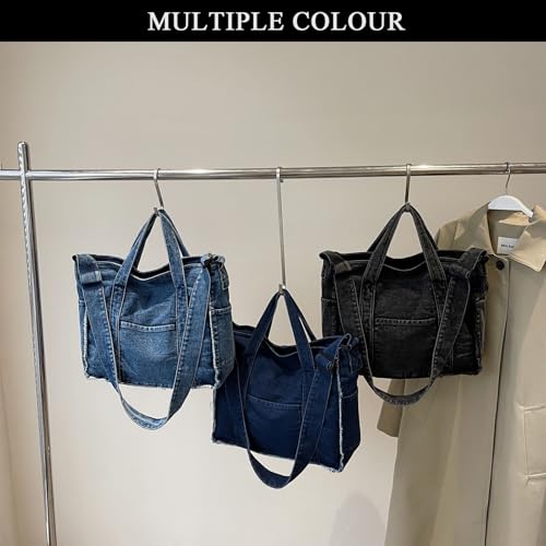 Denim Tote Bags for Women Jean Purse Casual Denim Handbag Large Capacity Crossbody Shoulder Bag