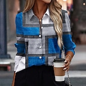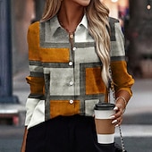 Women's Shirt Button Down Tunic Shirt Collar Long Sleeve Fashion Plaid s Print Regular Tops Casual Rose Gold Red Blue Orange Green Spring & Fall
