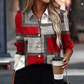 More information about Women's Shirt Button Down Tunic Shirt Collar Long Sleeve Fashion Plaid s Print Regular Tops Casual Rose Gold Red Blue Orange Green Spring & Fall