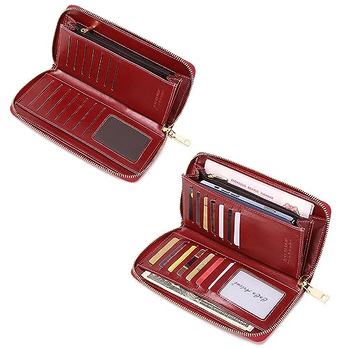 More information about Womens Wallet RFID Blocking PU Leather Zip Around Wallet Large Capacity Long Purse Credit Card Clutch Wristlet(Pink)
