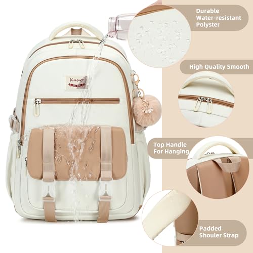 School Backpack for Teen Girls College Backpacks for Women Students Bookbag Large 15.6 Inch Laptop Bags Kids Kindergarten Elementary Middle School Bag Anti Theft Daypack Travel Back Pack Beige 6