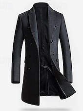More information about Men's Winter Coat Wool Coat Overcoat Work Street Winter Wool Windproof Warm Outerwear Clothing Apparel Solid Colored Notch lapel collar