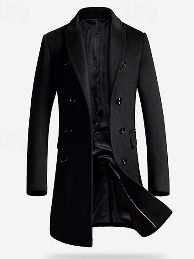 HOT ! Men's Winter Coat Wool Coat Overcoat Work Street Winter Wool Windproof Warm Outerwear Clothing Apparel Solid Colored Notch lapel collar