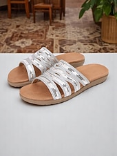 More information about Women's Bronze Multi-Strap Flat Slide Sandals – Bohemian Style Open Toe Slippers for Daily Wear, Travel, and Vacation