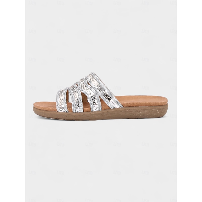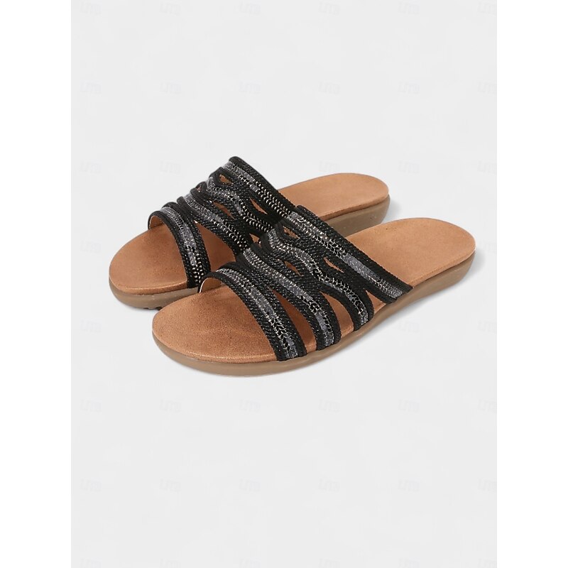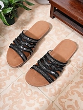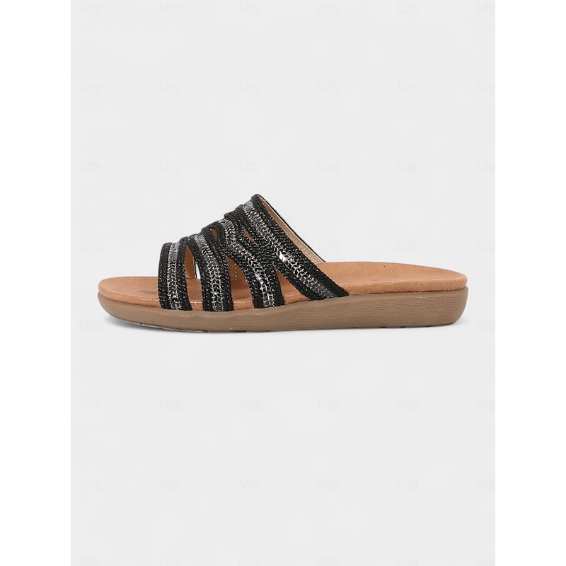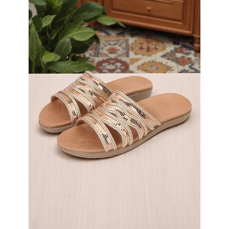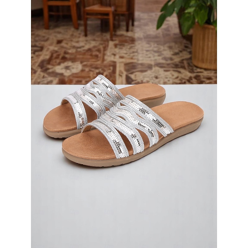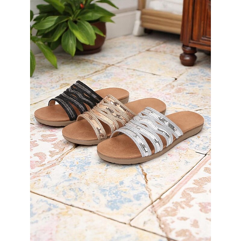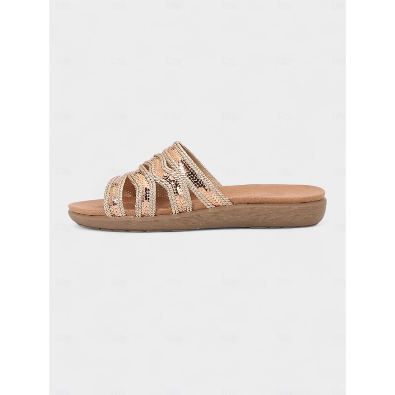HOT ! Women's Bronze Multi-Strap Flat Slide Sandals – Bohemian Style Open Toe Slippers for Daily Wear, Travel, and Vacation