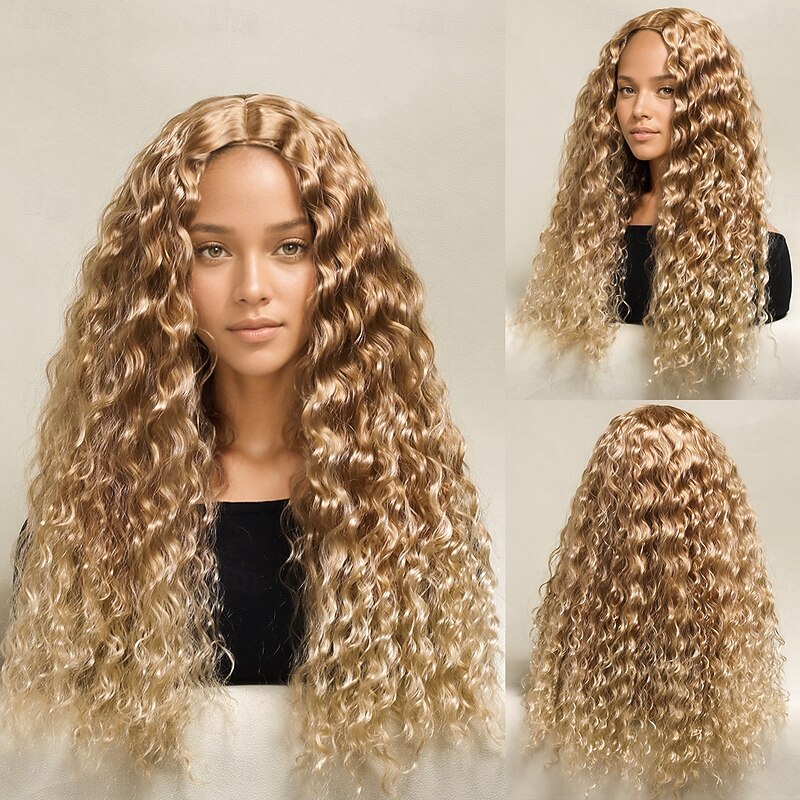 $27.99 - Synthetic Wig Afro Curly Water Wave Layered Haircut Deep Parting Machine Made Wig 26 inch A1 Synthetic Hair Women's Middle Part Cool Classic Blonde 2025. Shop for cheap Synthetic Trendy Wigs online? Buy at lightinthebox.com on sale today!
