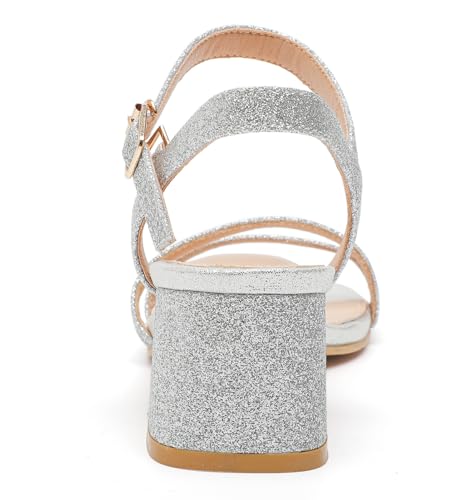• COMFY WITH ALL DAY WEAR: These chunky heel sandals are born with high quality sparkling man-made material, lightly padded insole, durable slip-resistant out-sole and ultra-soft lining. Each part is designed to protect your feet gently, sure you will feel nothing but comfort
