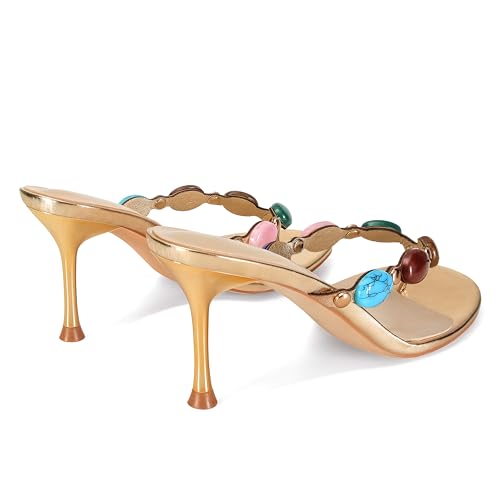 Women's Strappy Heeled Sandals Jewelled Thong Flip-Flop Kitten Heels Slip On Pumps Stiletto Dressy Summer Mule High Heel Round Open Toe Fashion Vintage Bohemia 4