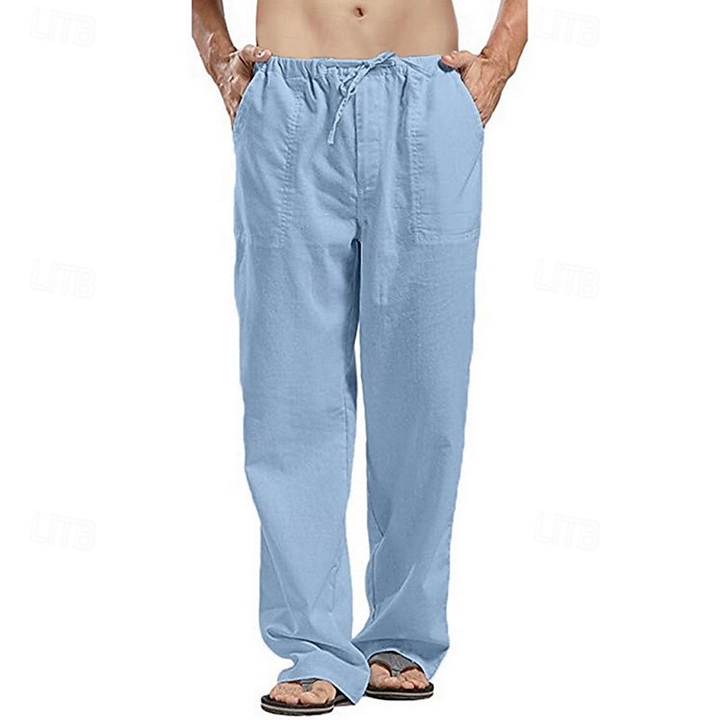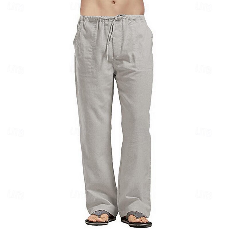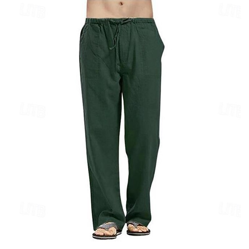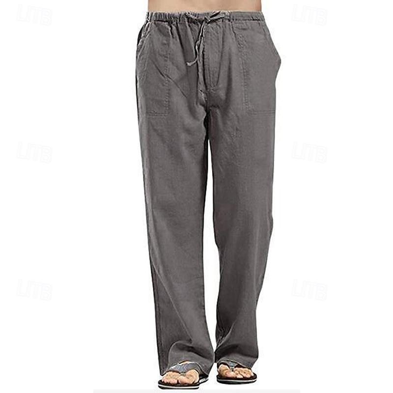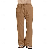 More information about Men's Linen Pants Trousers Summer Pants Beach Pants Drawstring Pocket Elastic Waistband Plain Comfort Breathable Full Length Daily Streetwear Fashion Casual / Sporty Loose Fit Dark Khaki Black