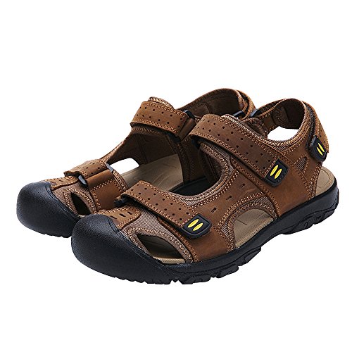 Men's Closed-toe Hook&Loop Leather Outdoor Trekking Sports Sandals Shoes 6