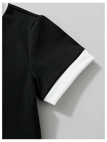 OYOANGLE Girl's 2 Pack Short Sleeve T Shirts Contrast Binding Round Neck Summer Casual Tee Tops 2