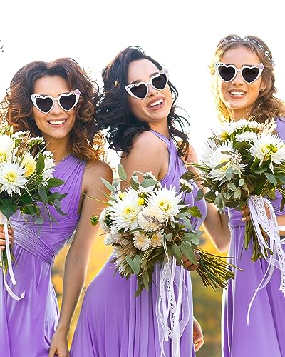 Xuhal 12 Pairs White Heart Party Sunglass Bulk Wedding Bridesmaid Bachelorette Glasses with DIY Letter Bead Pearl for Party 3