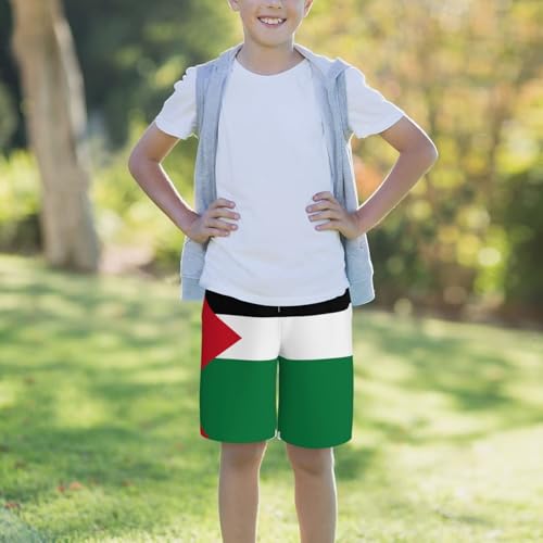 HOT ! Flag of The State of Palestine Small Youth Beach Pants, Soft and Breathable, with Drawstring Waist, Suitable for Sports and Leisure. Black