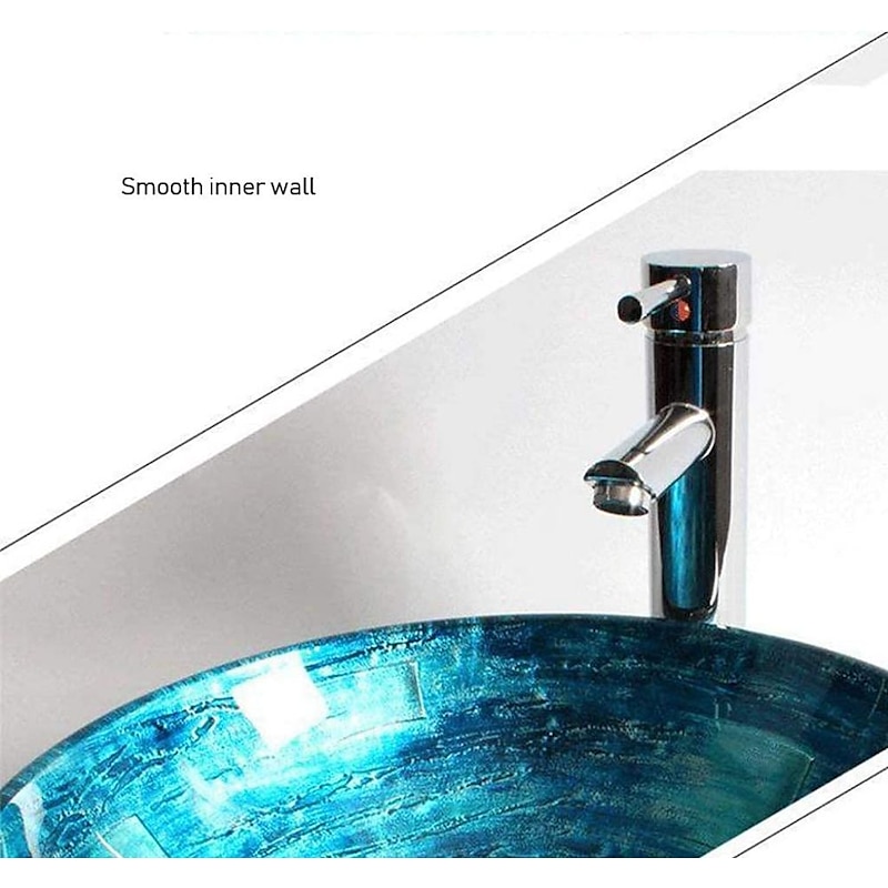 More information about Round Artistic Vanity Basin Sink Bathroom Vessel Tempered Glass Bowl 16.5 inch, Art Wash Basin Mixer Faucet Set with Pop-up Drain, Boat Shape Countertop Above Counter Washroom