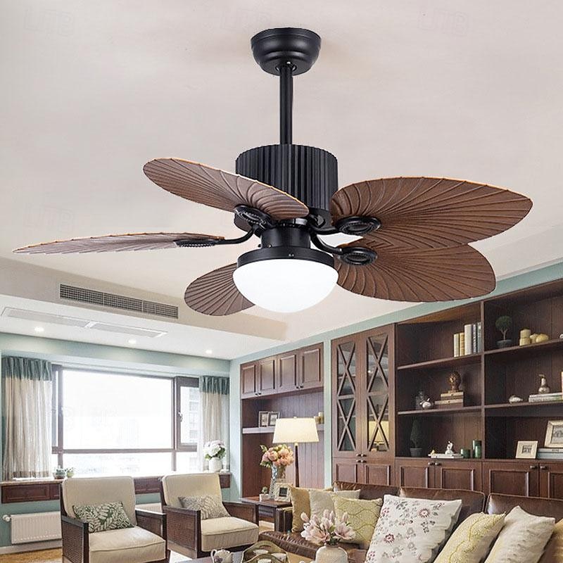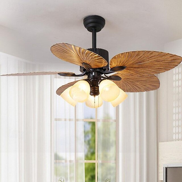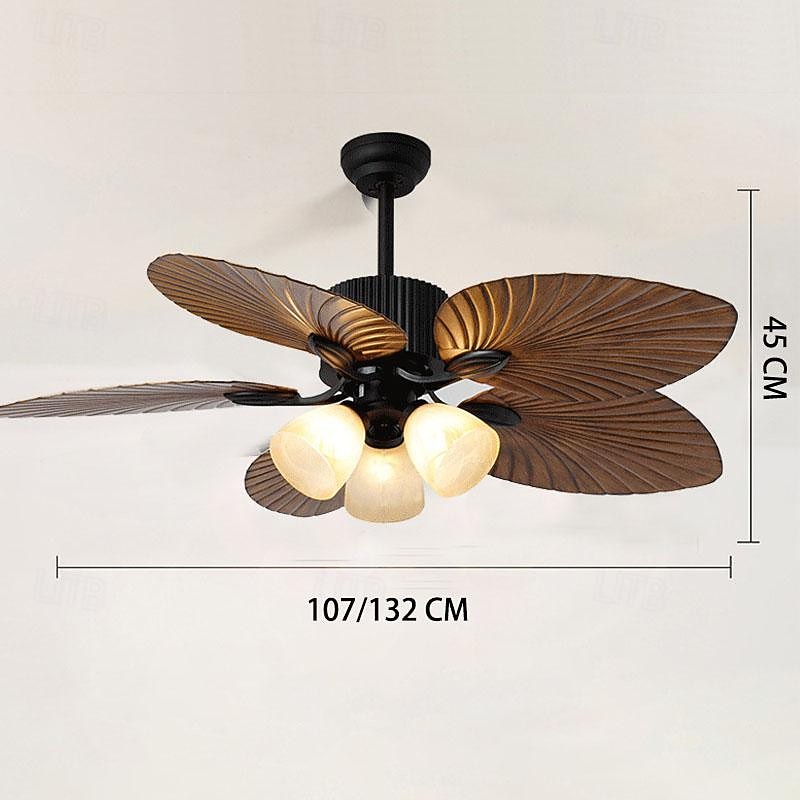 HOT ! Farmhouse Ceiling Fan With Light And Remote Control 108/130cm Industrial Style Metal Glass Rustic Brown Ceiling Fan With Reversible Motor 110-240V