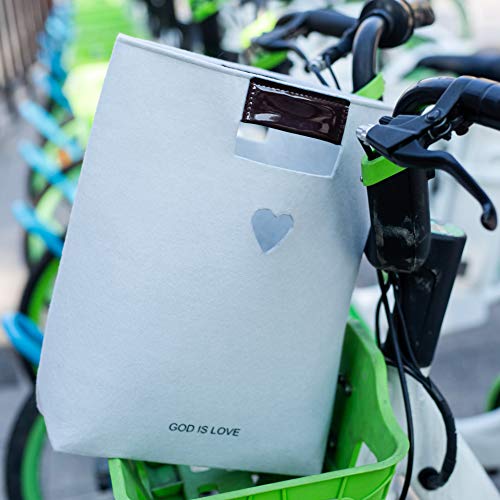 • EPIPHANEIA Women's Grey Felt Bible Bag - God Is Love Verse & Cut Out Heart Motif. This bag is made of great quality felt with P.U. handles - sturdy & durable while being soft and lightweight. The perfect bag to carry your Bible, Study Books, Purse, Phone, Highlighters & Pens. Large enough to fit in the essentials & small enough to carry easily. This is an open tote bag, with no clasps - it's great for throwing loose items in before stepping out. The subtle grey colour goes with any outfit.