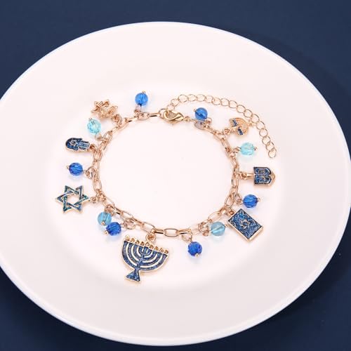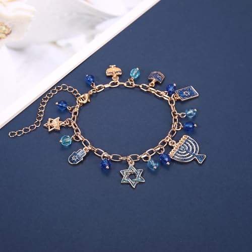 HOT ! ZOLEAROPY Hanukkah Bracelet Jewish Festival of Lights Star of David Menorah Dreidel Charms Bracelet Chanukkah Bat Mitzvah Jewelry Gift for Women Men