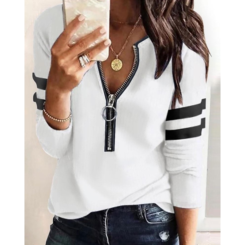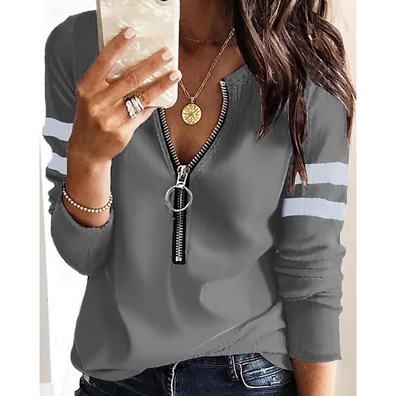 HOT ! Women's T shirt Long Sleeve Quarter Zip Long Sleeve Casual Zip Up Sweatshirt Sweatshirt Pullover Sports Basic Textured Waffle Street V Neck Half Zip Black White Red Blue Gray Fall & Winter Prefall