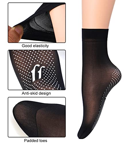Glamorstar Ankle Short Socks for Women 6 Pairs Silky Anti-Slip Cotton Sole Sheer Socks 4