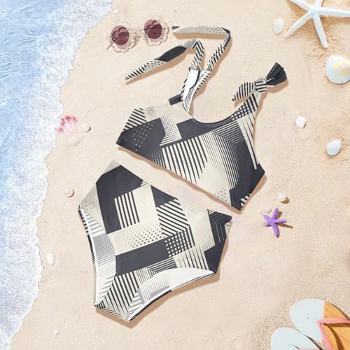 KLL Black and White Stripes Girls' 2 Piecing Bikini Sets Beach Swimsuits Swimwear Cute Shoulder Strap 2