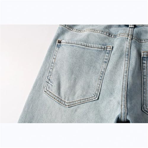 Mnjyihy Men's Slim Fit Jeans High Street Distressed Washed Blue Stretch Skinny Button Fly Ripped Jeans Pants 6