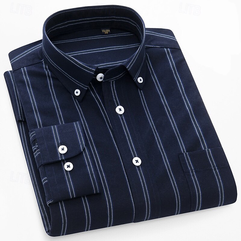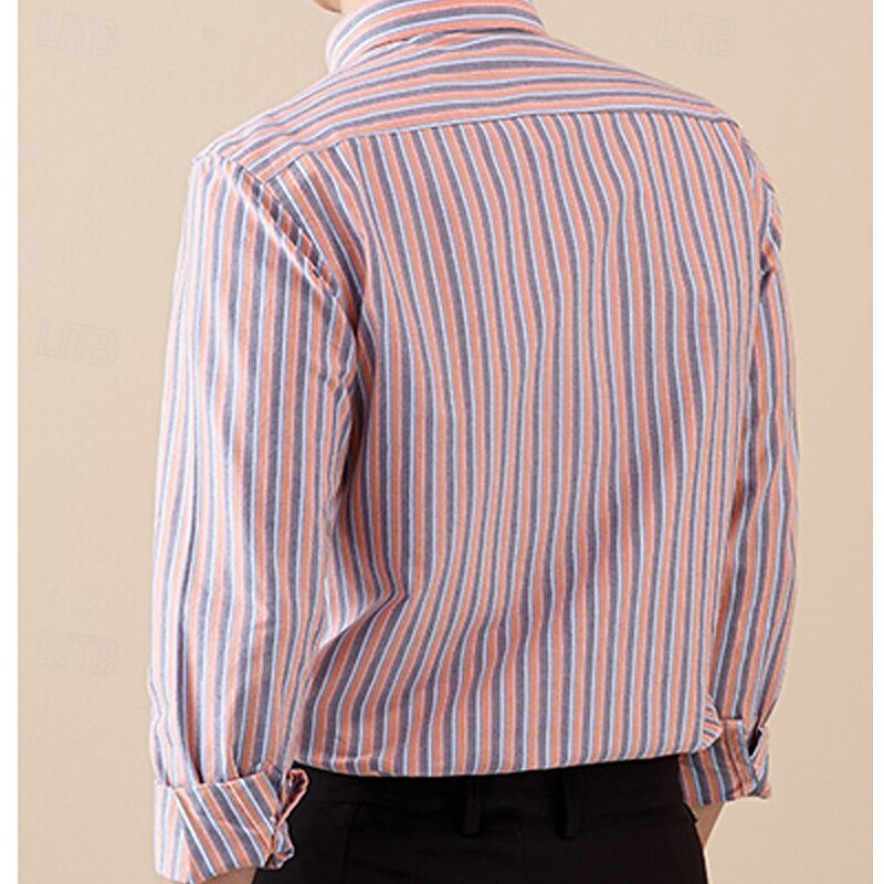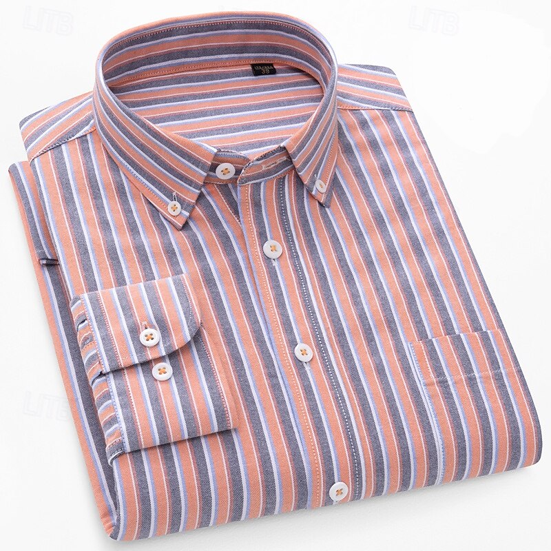 More information about Men's Shirt Dress Shirt Button Down Shirt Oxford Shirt Striped Shirt Stripes Daily Wear Corporate Clothing Light Pink Yellow Dark Navy Blue Long Sleeve Shirt Collar All Seasons Clothing Apparel Buckle