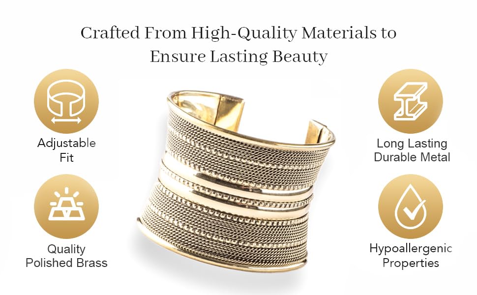 • High Quality Brass: Crafted from high-quality brilliant brass, this wide cuff offers superior durability, ensuring your brass polished cuff stays radiant.