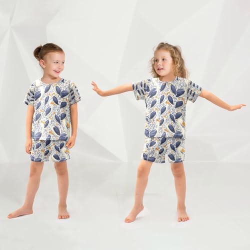 Pajama Sets Short Sleeve Birds Pattern Print Design Soft Cotton Summer Sleepwear 2 Piece PJS Size 5-14T 5