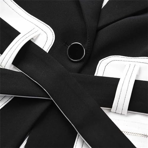 Women Contrast Color Pocket Notched Blazer Lapel Long Sleeve Loose Fit Jacket