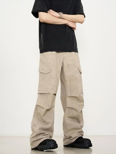More information about Jeans Pants Trousers Denim Vintage Washed Khaki Straight Leg Loose Wide Casual Commuting Multi Pocket Workwear for Men