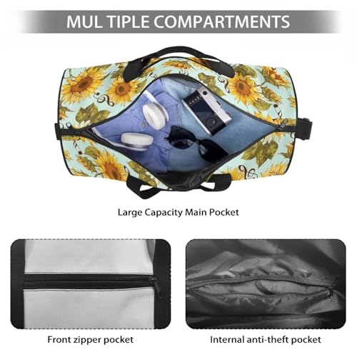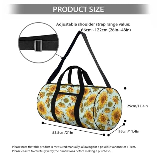 HOT ! Sunflower Music Note Canvas Duffle Bag for Travel, 50L Duffel Overnight Weekend Bag (Green)